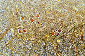 5-comparamos el polen de una flor fresca y el polen extraido de las colmenas de la escuela observando en el microscopio